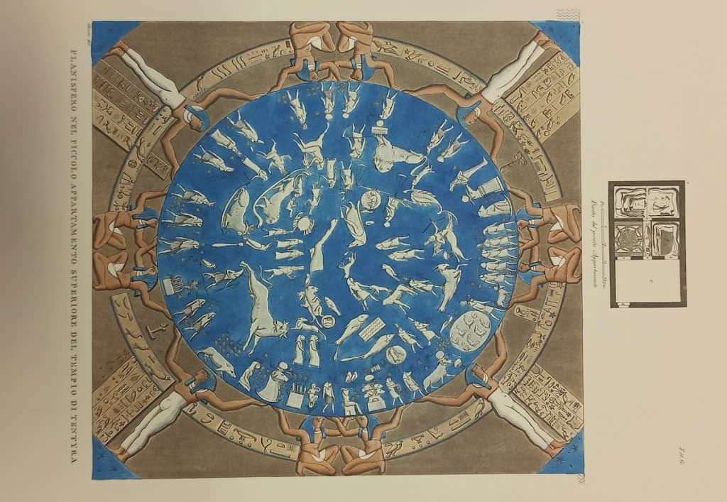 Molti anni dopo, nel 1823, Segato torna in Italia dopo una permanenza di cinque anni in Egitto. Porta con sé parte dell’enorme lavoro di documentazione tra cui uno dei suoi disegni più belli che riproduce uno zodiaco del tempio di Tentyra votato alla dea Hathor.
